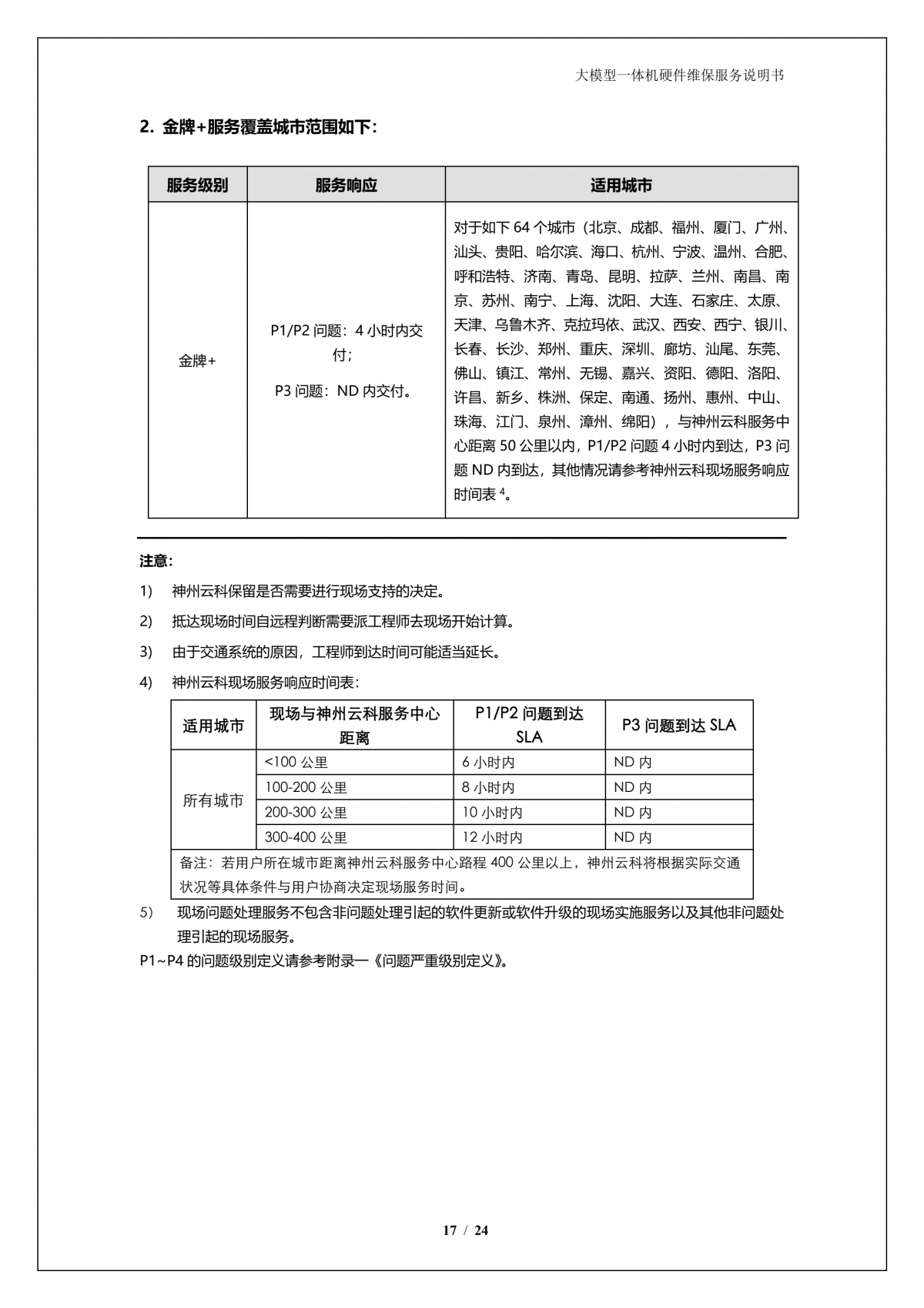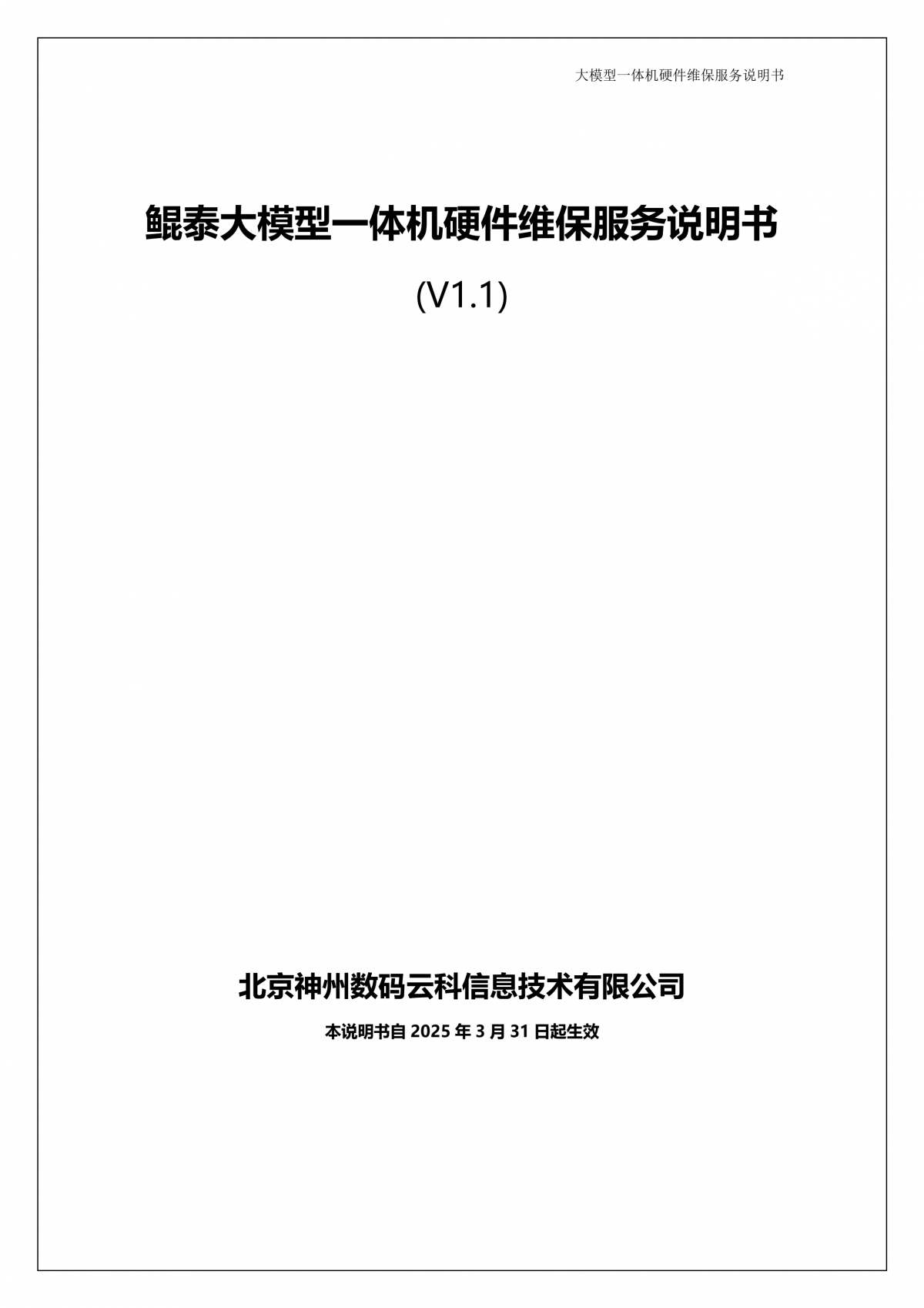 神州A924 DS大模型一体机硬件维保服务说明书_V1.1